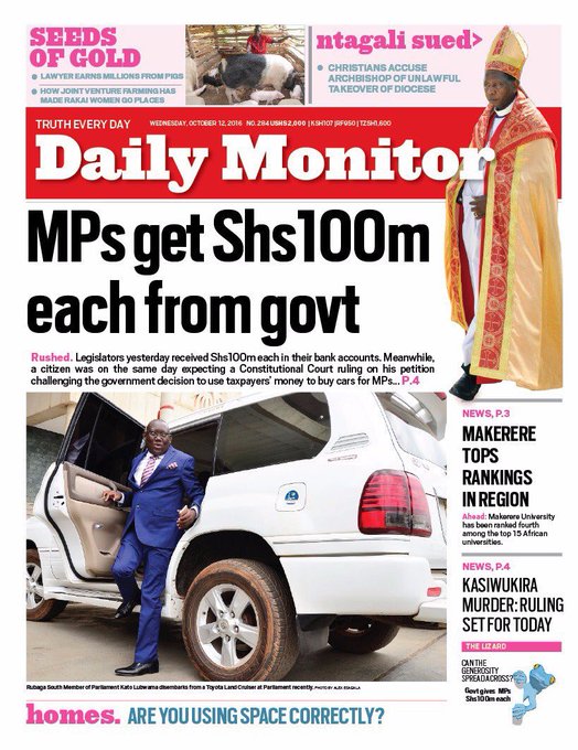 The news portal further noted that the monies transferred were not budgeted for in the 2016/2017 financial year but the speaker of the parliament, Rebecca Kadaga, took a decision to suppress other expenses to raise money for the vehicles.