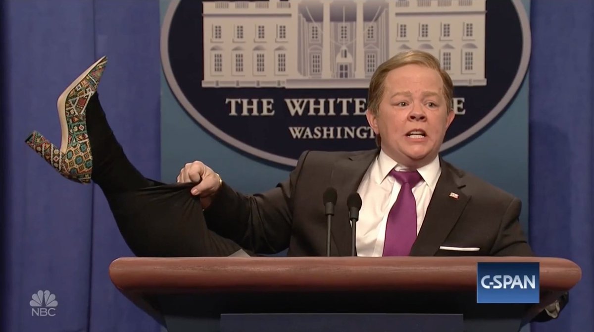McCarthy generated rave reviews last week for her first turn as the White House’s pugnacious new chief spokesman. In her second outing, McCarthy again spoofed Spicer’s reported love for chewing gum and his combative exchanges with reporters.